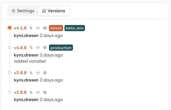 Click on a version to assign it to an environment. A dropdown lets you:- Select an existing environment (e.g.