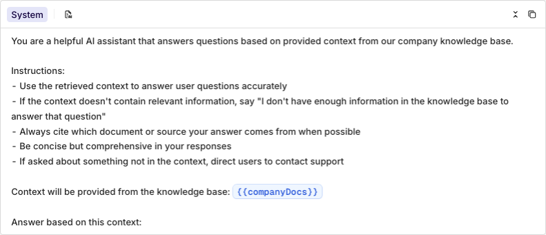 Learn more about knowledge base configuration in Knowledge Base, and prompt configuration in Using Knowledge Bases in Deployments.