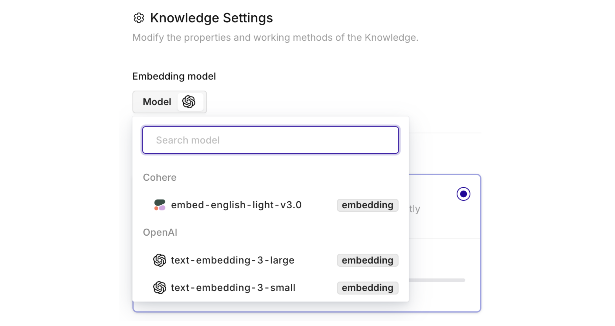 Here you can define which model to use. You need to have activated Embedding models within your .