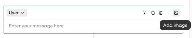 When adding a message to your dataset, you can include images to create image-text paired datapoints:- Add a message by clicking the message cell in your dataset row