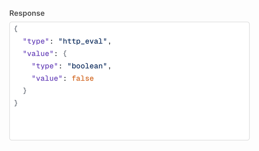 For an HTTP Evaluator to be valid, orq.ai is expecting a certain response payload returning the evaluation result.Boolean Response