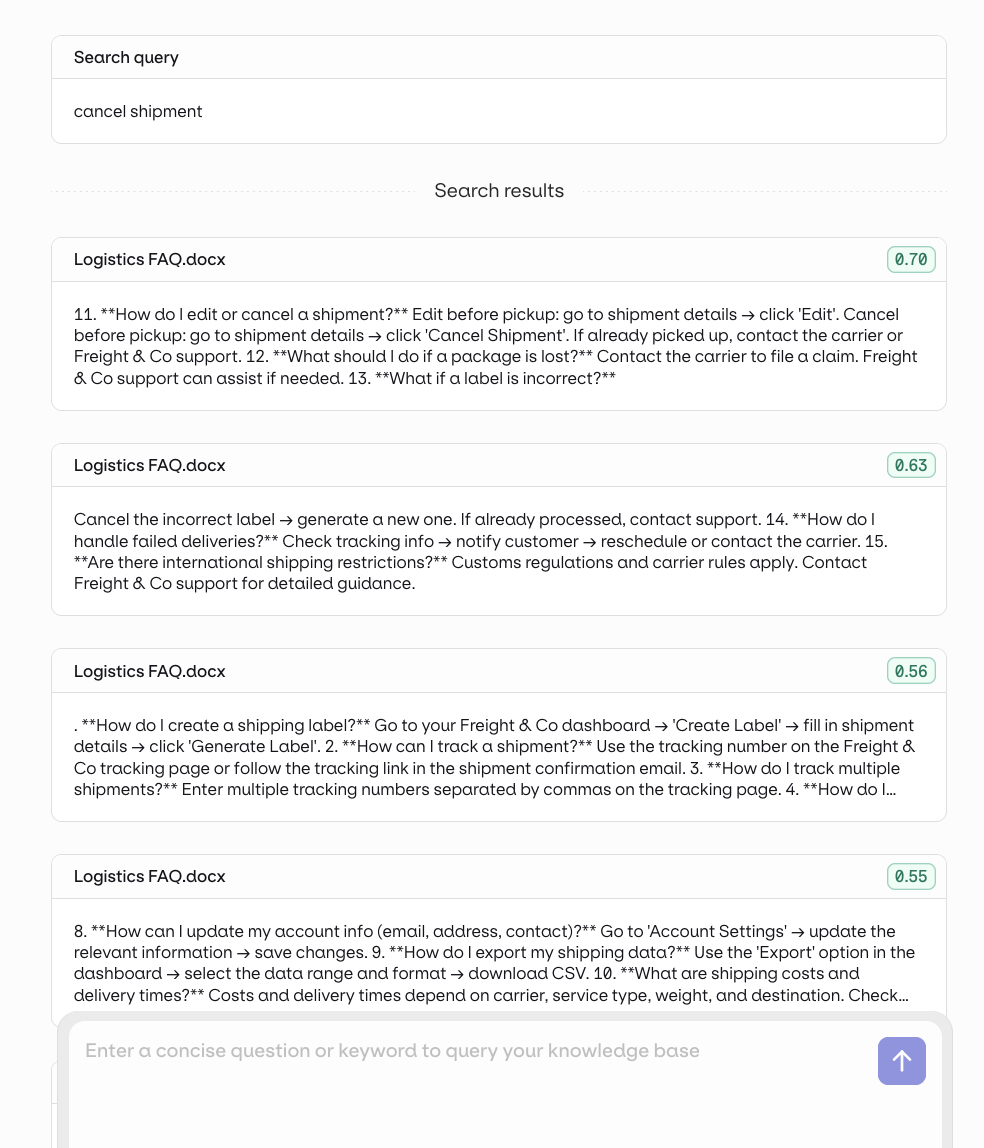 filetypeorsourceto restrict results to PDFs, support tickets, or a specific data feed. - Topic scoping: tag chunks by