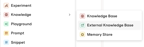 Choose `External` when connecting your Knowledge Base