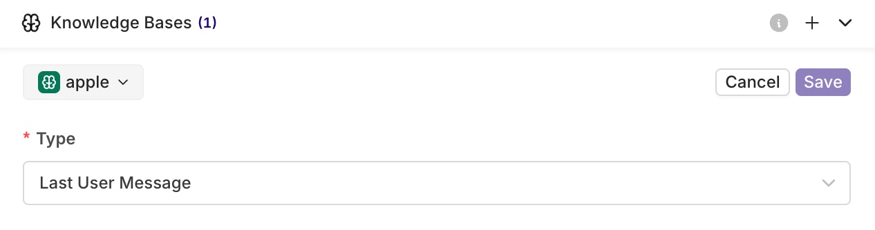 Here you can decide whether the Knowledge Base type islast user message or query. This defines how the Knowledge Base will be queried. This will be seen in the following section.