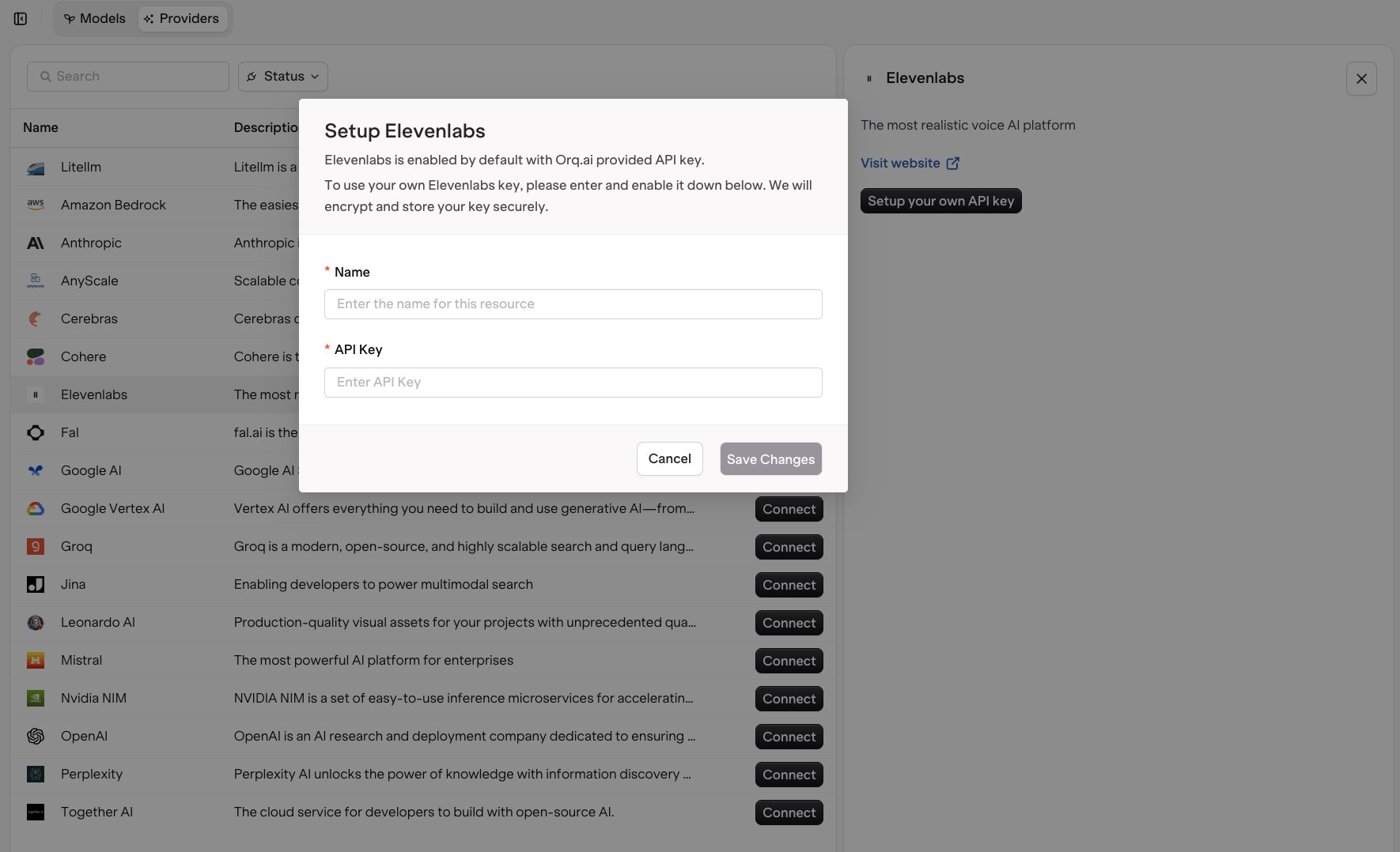 A modal will open, choose Setup your own API Key and enter your API details.