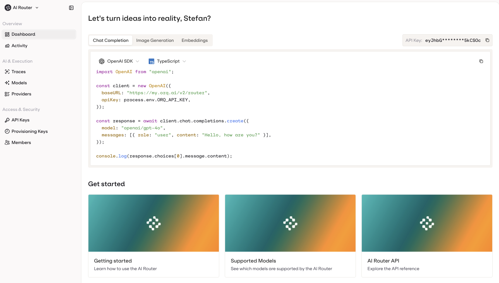 Use the AI Router Dashboard to quickly get started with the AI Router