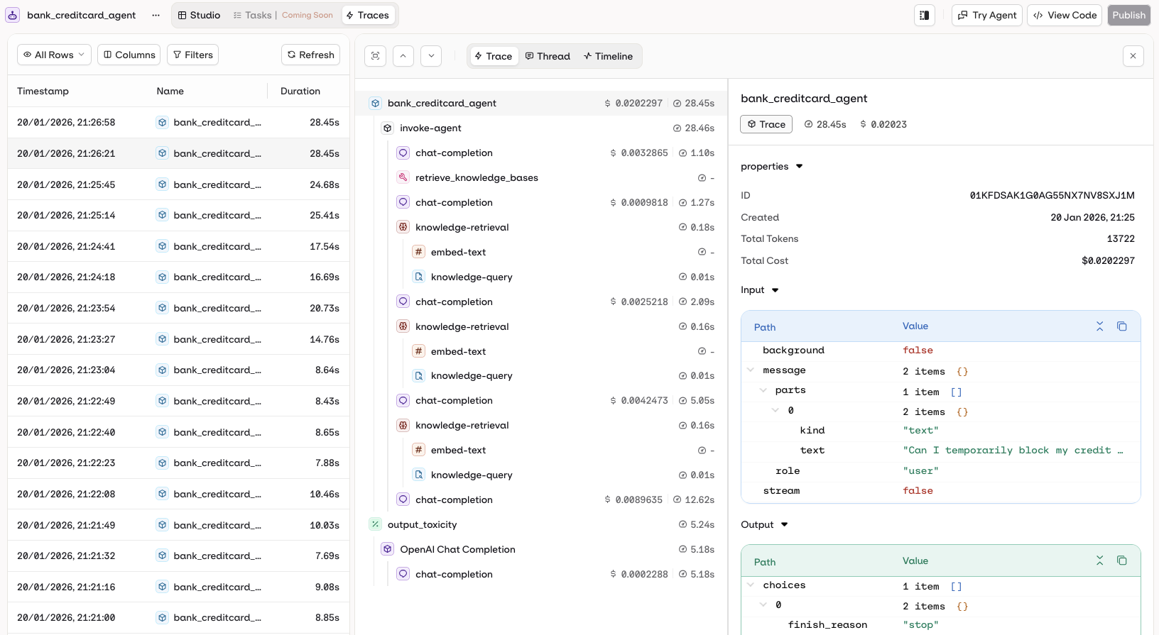 - Monitor Performance - Identify bottlenecks by seeing which operations take the most time. Use this to optimize your prompts or model selections.