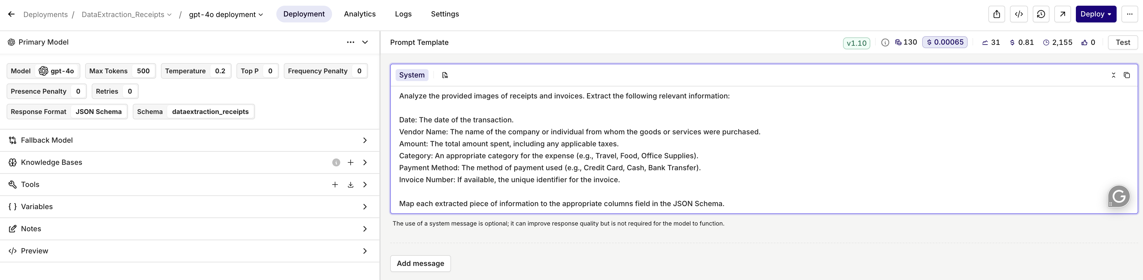 - Refine Model Outputs: Explore Orq’s deployment configurations to optimize the data extraction process for specific image types or fields.