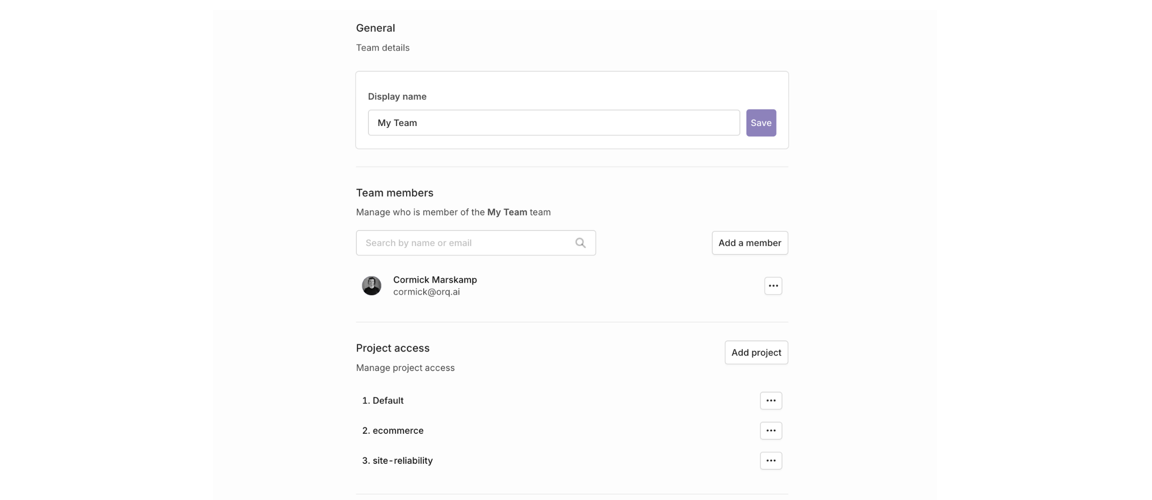 Your team configuration screen, where you can add members or configure project access.